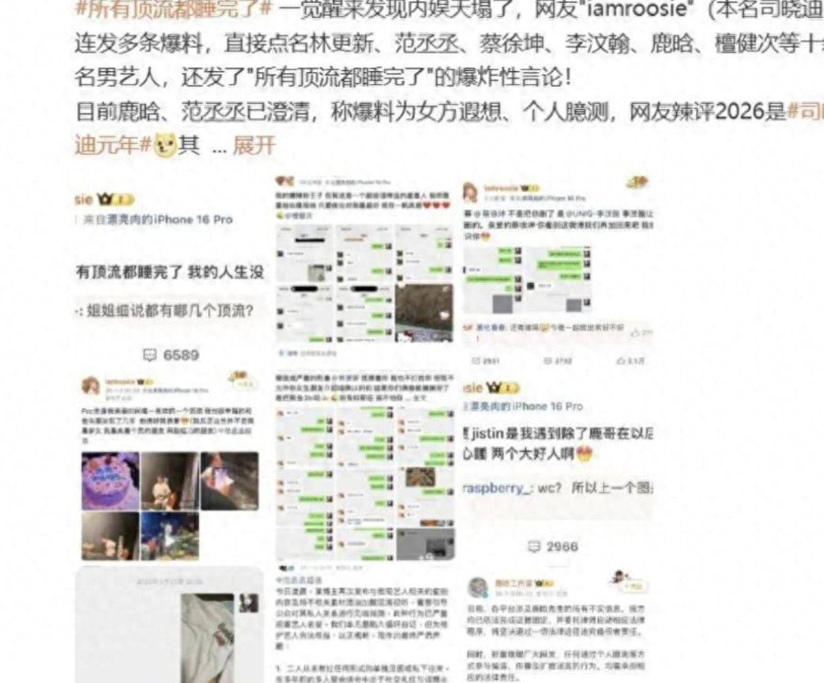 其实这不是司晓迪第一次“搞事情”。早在2023年她就卷入秦霄贤的情感纠纷,去年还发文称被李云迪“带到酒店发生不当行为”。有意思的是,每次爆料都精准踩中流量密码,但证据链永远经不起推敲。这次之所以能掀起这么大风浪,说到底还是抓住了大家的“偏见软肋”——总觉得娱乐圈就是个大染缸,男明星私生活混乱是“常态”。就像网友说的:“我们不是在吃瓜,是在找一个能印证自己想象的靶子。”