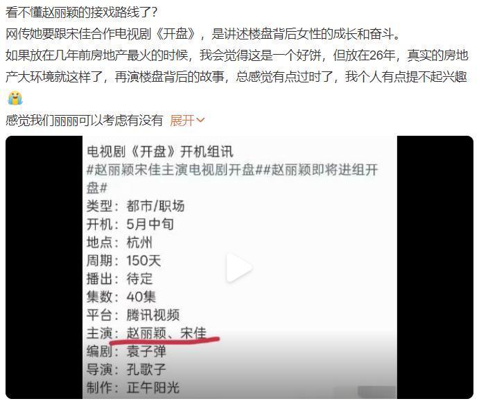 根据知情人士透露,赵丽颖即将进组拍摄《开盘》,这部剧是正午阳光出品,质量是有保证的,可是看到这样的消息,赵丽颖的粉丝却并不看好,主要是因为“题材”。